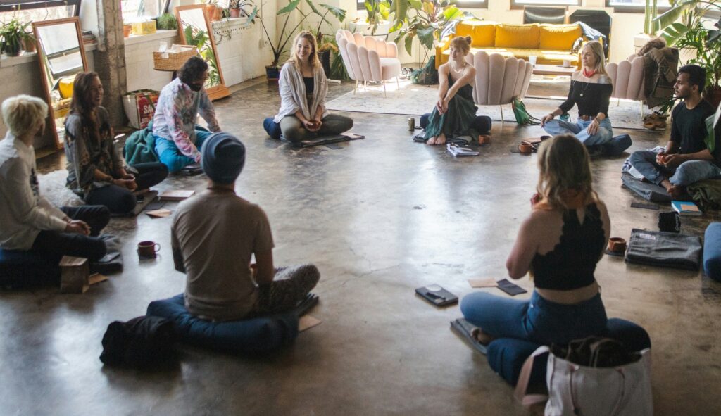 Tuo tarpu meditacija grupėje ugdo bendrystę. Kasdienybėje mus dažnai skiria įsitikinimai, vertybės, kalba, kultūra, statusas, turtinė padėtis, amžius ir daugybė kitų dalykų. Tačiau tyloje tampame vieningi – laisvi nuo kaltinimų, šališkumo ar tendencingumo. Tyla tampa empatijos ir pagarbos erdve. Joje nesvarbu, kas mes tokie, kuo užsiimame, iš kur atvykome, ką galvojame ar kokia mūsų nuomonė. Medituodami visa tai atidedame į šalį ir būname čia bei dabar, susitelkę į kvėpavimą.